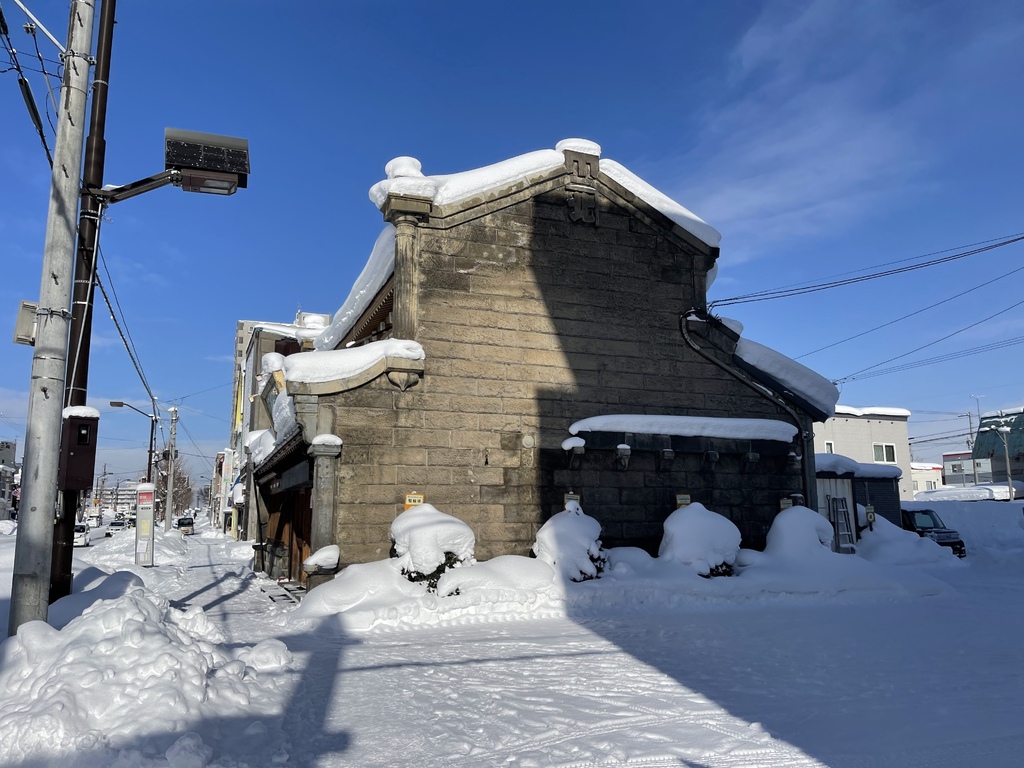 從它的側面牆就能感受到滿滿的歷史風味!(同時也是被雪覆蓋住的專屬停車場)
