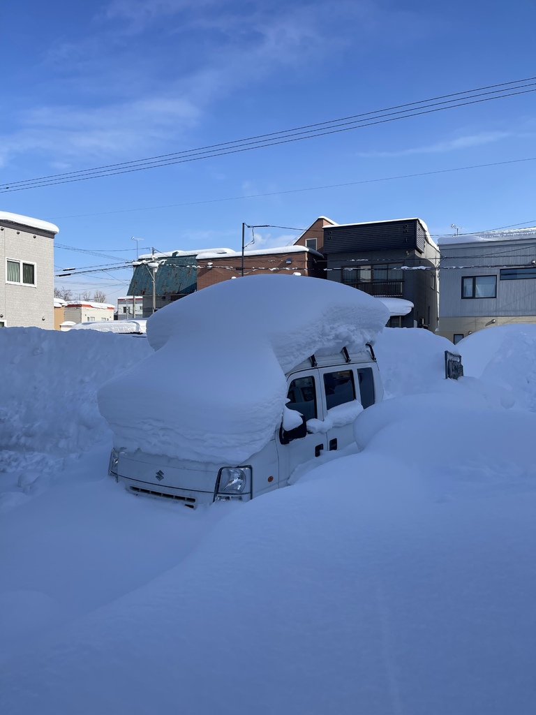旁邊停了一台被大雪覆蓋的車.....可見這幾天雪有多大!!