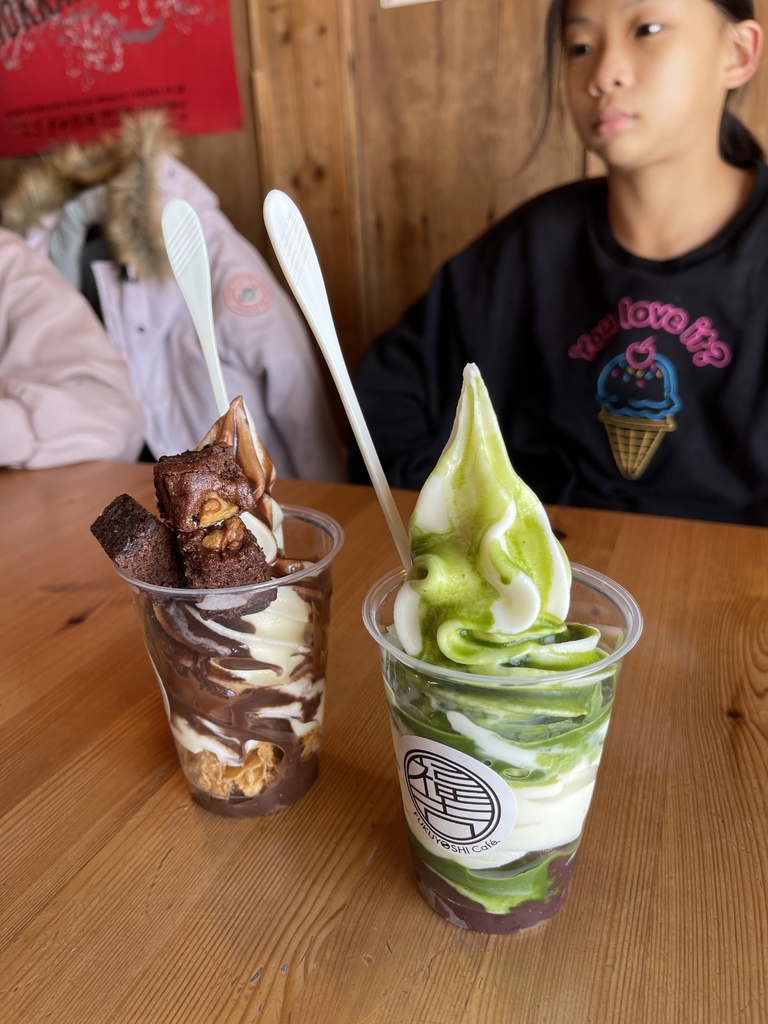 小孩的巧克力聖代&抹茶聖代,蠻濃郁的口感,抹茶尾勁有點小苦味,不過就很日式口感。