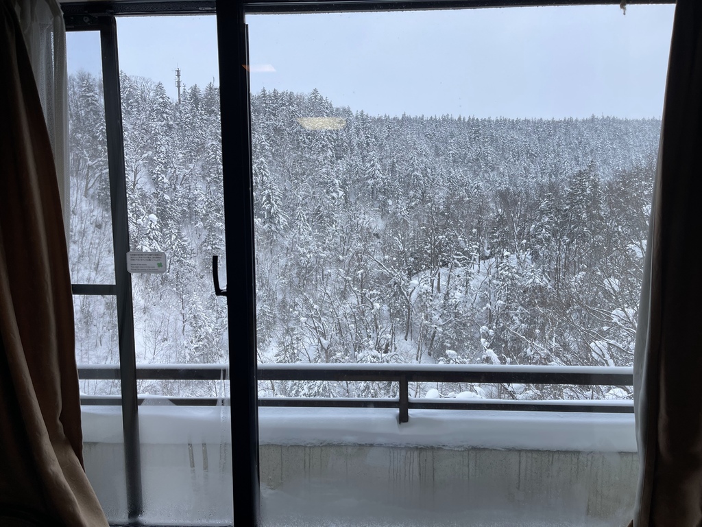 打開房間窗戶的窗簾,就是這片美景,左手邊的鐵橋可以看、拍到白鬚瀑布,所以我們是住在白鬚瀑布的上方耶!