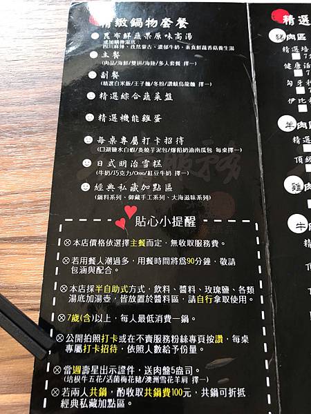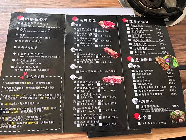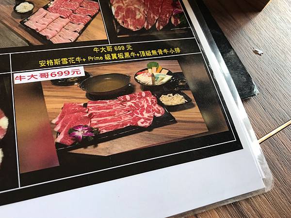 我點「牛大哥」(安格斯雪花牛+Prime級翼板黑牛+頂級無骨牛小排),從吃的順序到涮的時間都有介紹。