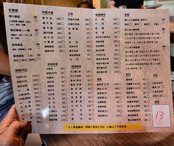 極牛湯底180元,點兩盤牛肉(特極或頂極)就變半價。